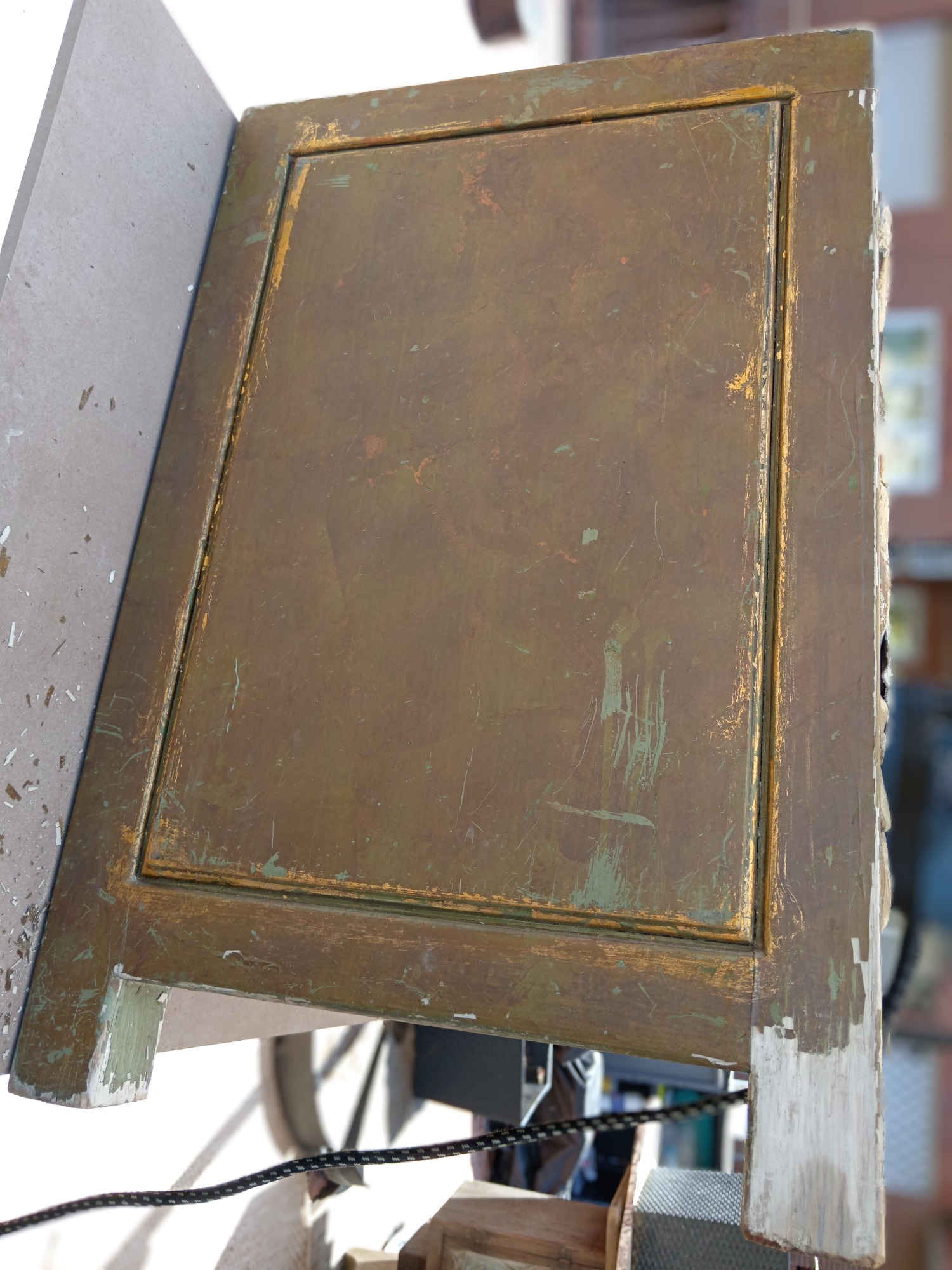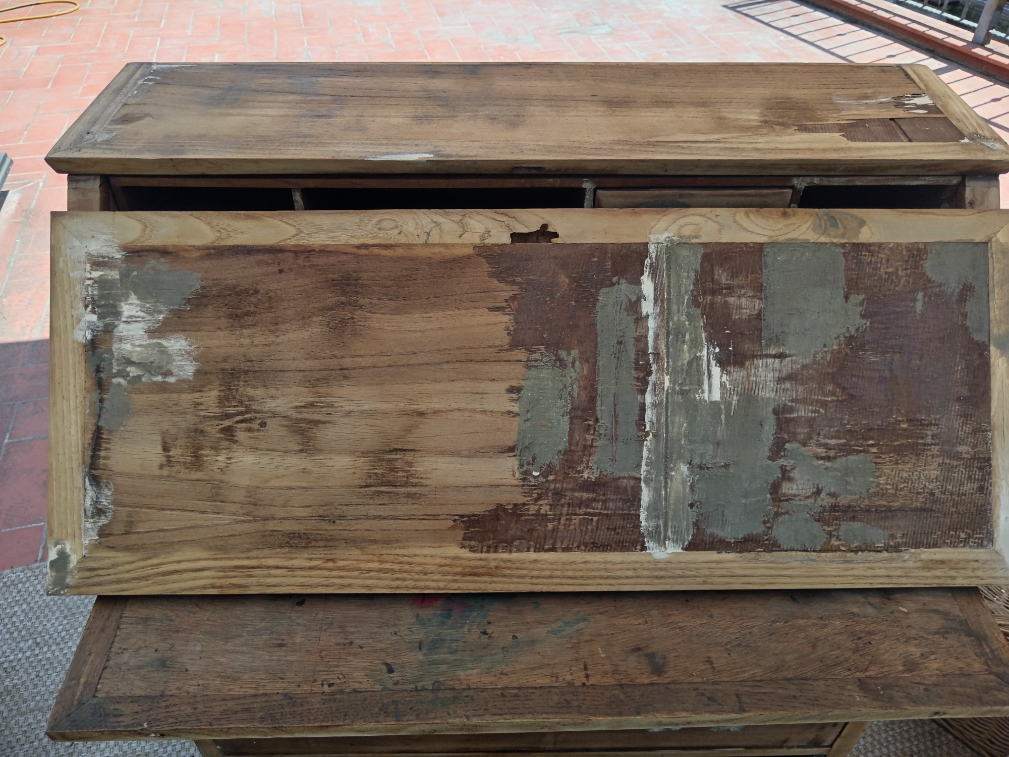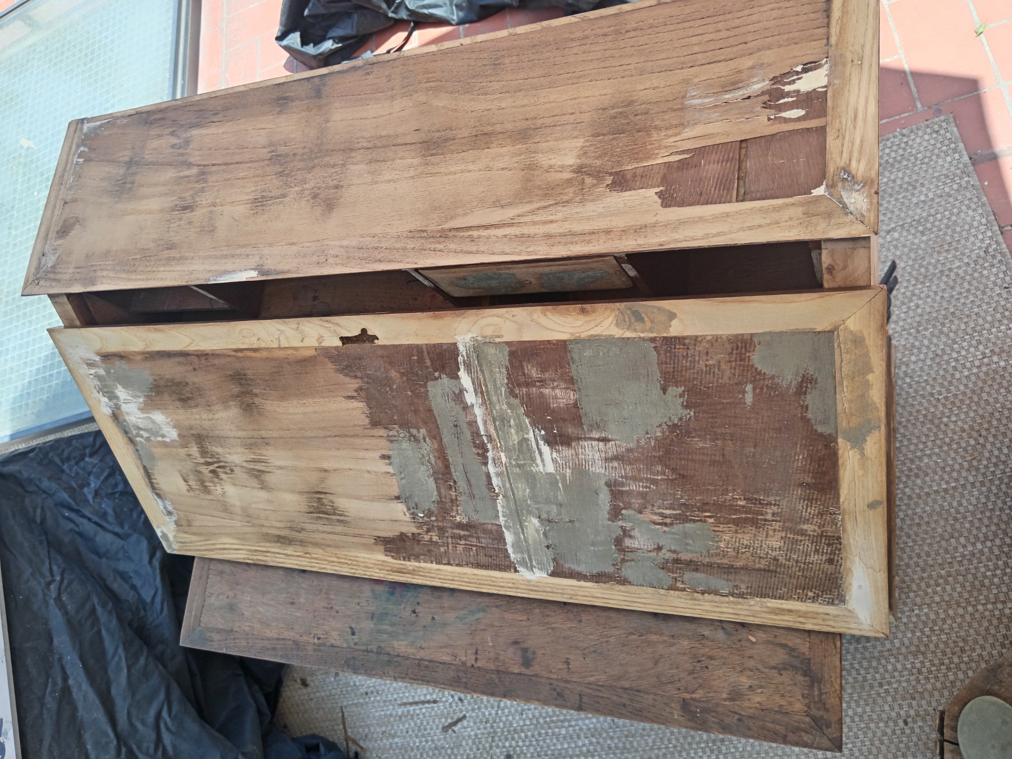 Modificación parcial. Aumentamos otro color para contrastar. Cuatro capas se removieron para llegar a su madera original