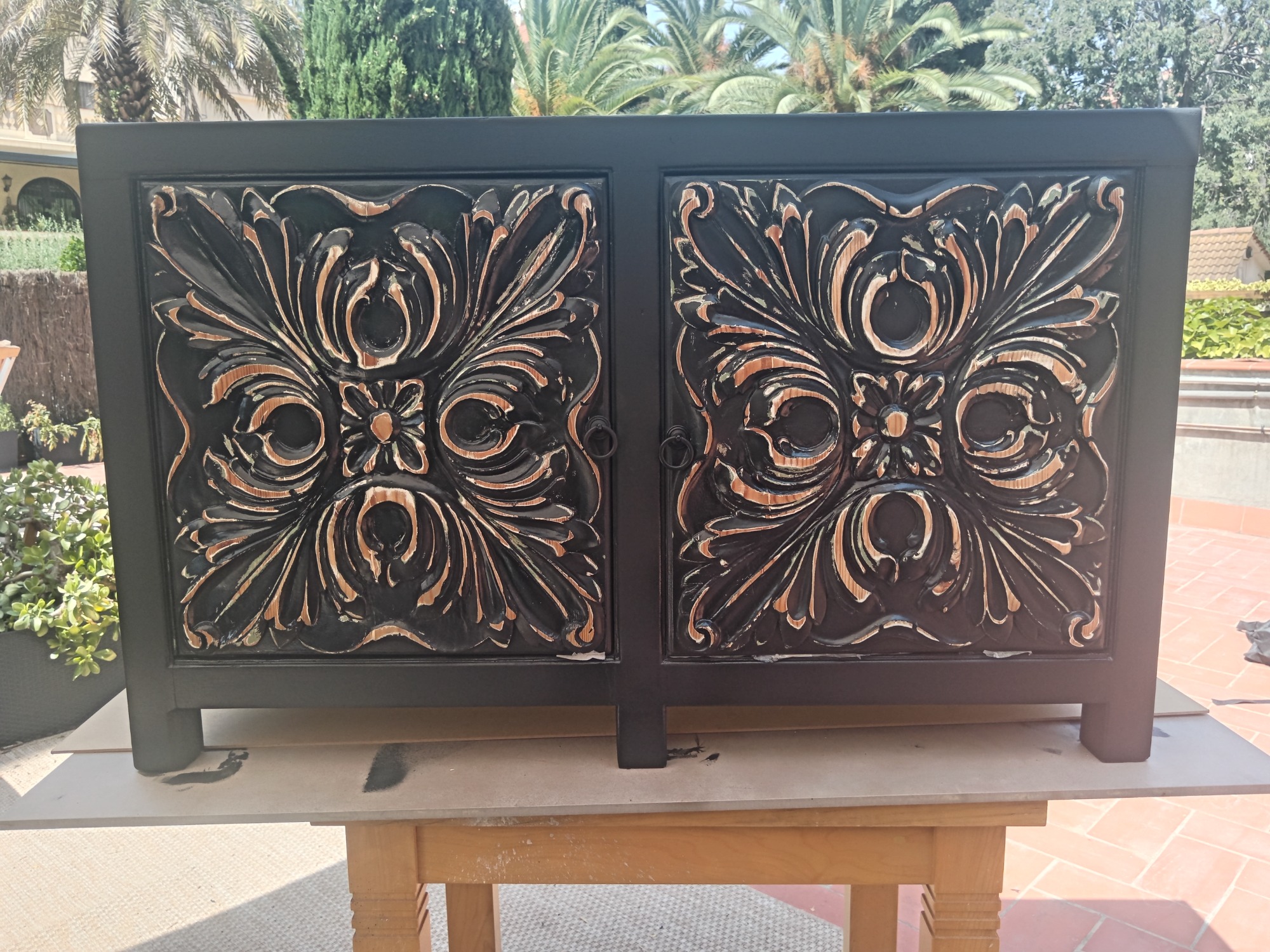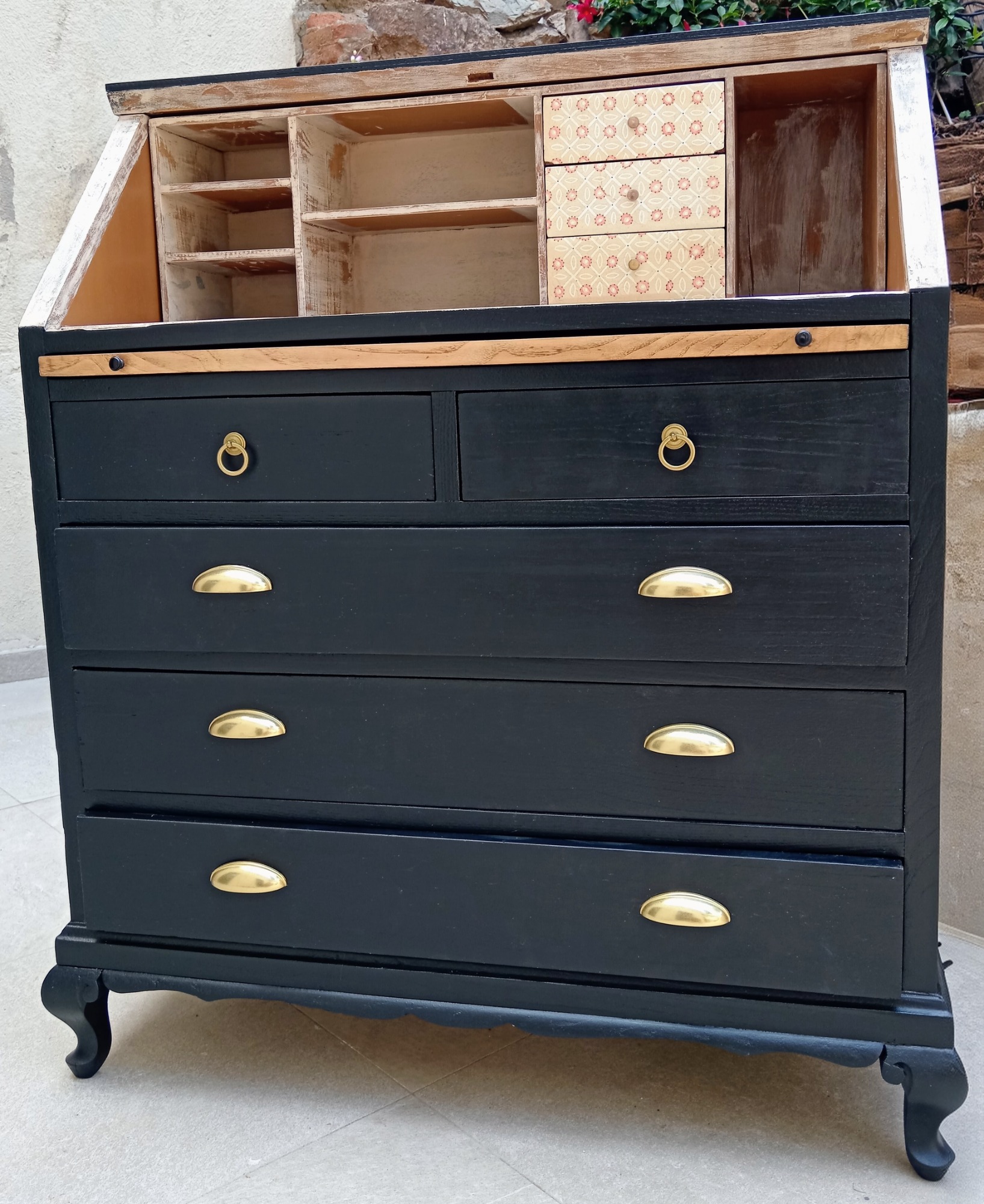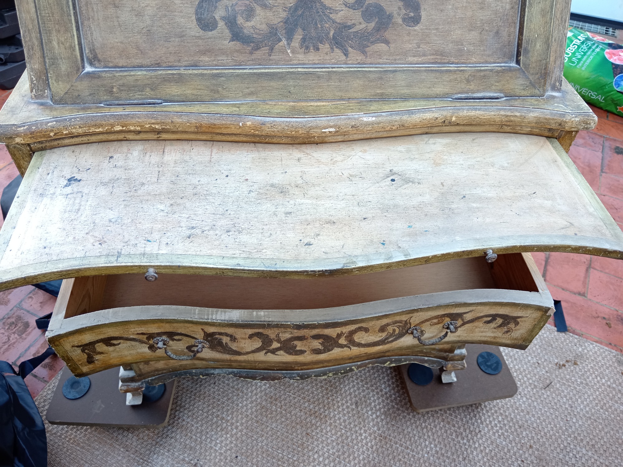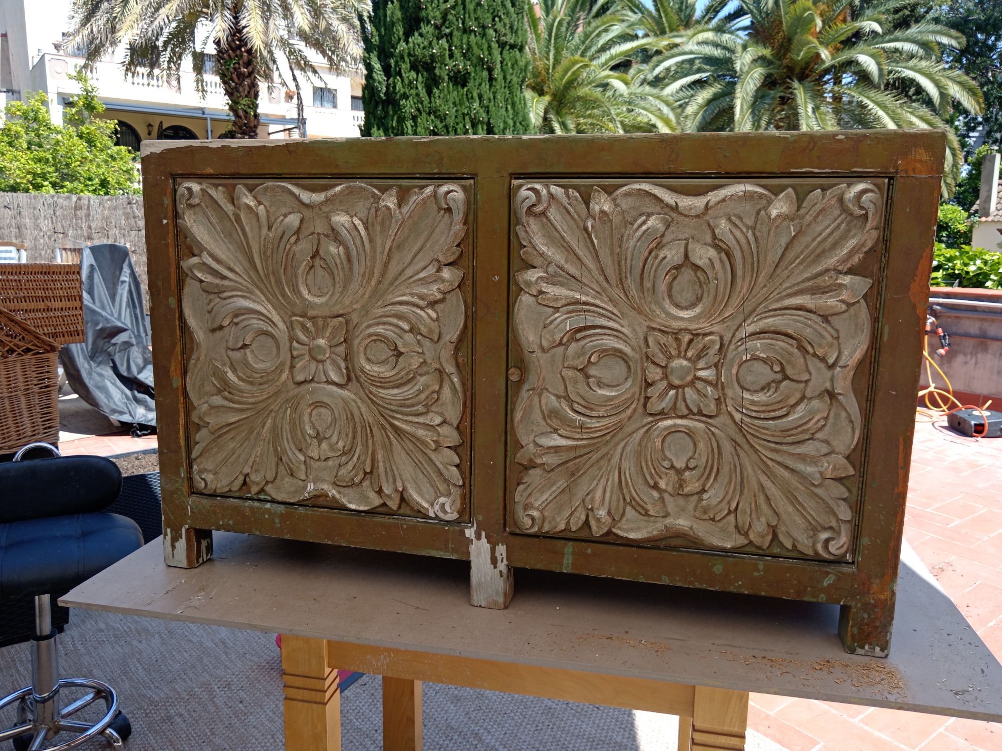 Modificación parcial. Aumentamos otro color para contrastar. Cuatro capas se removieron para llegar a su madera original